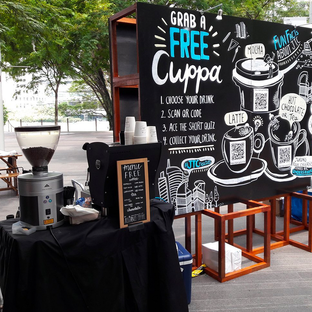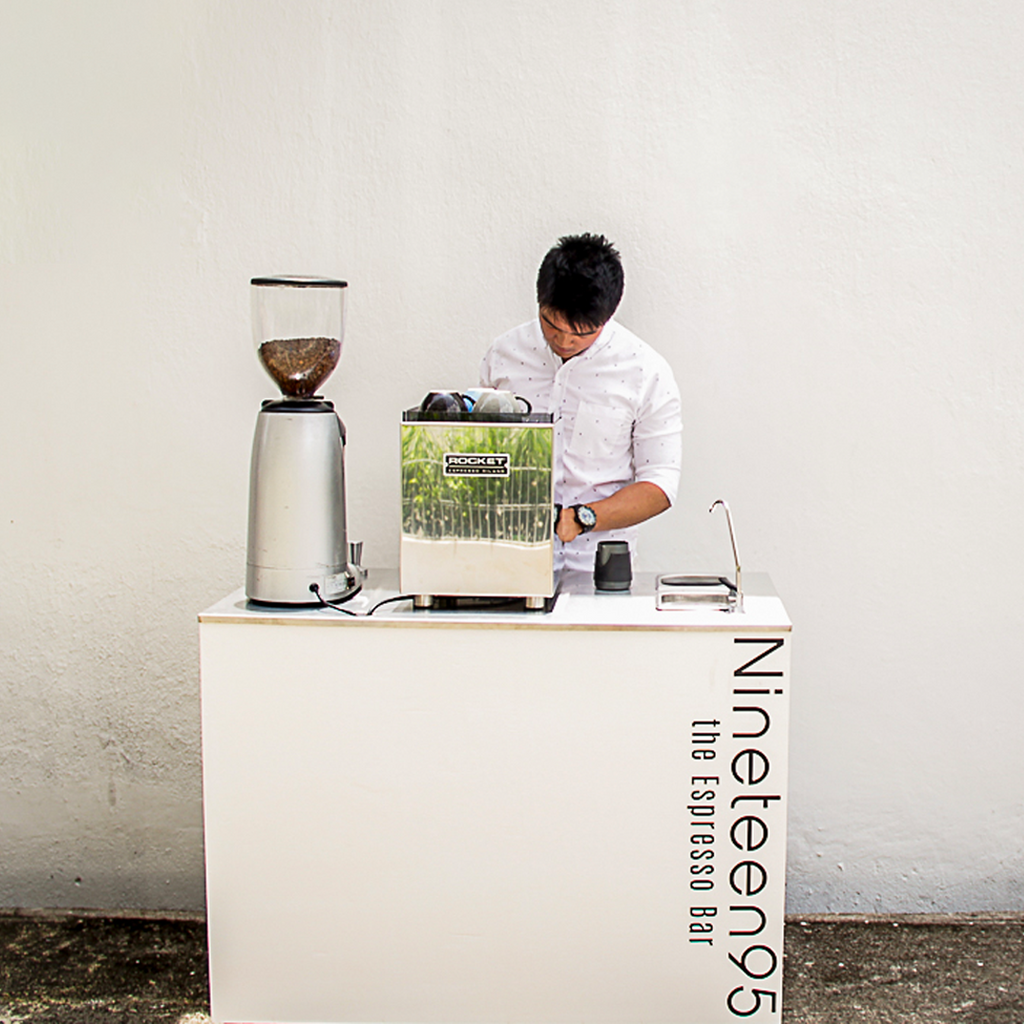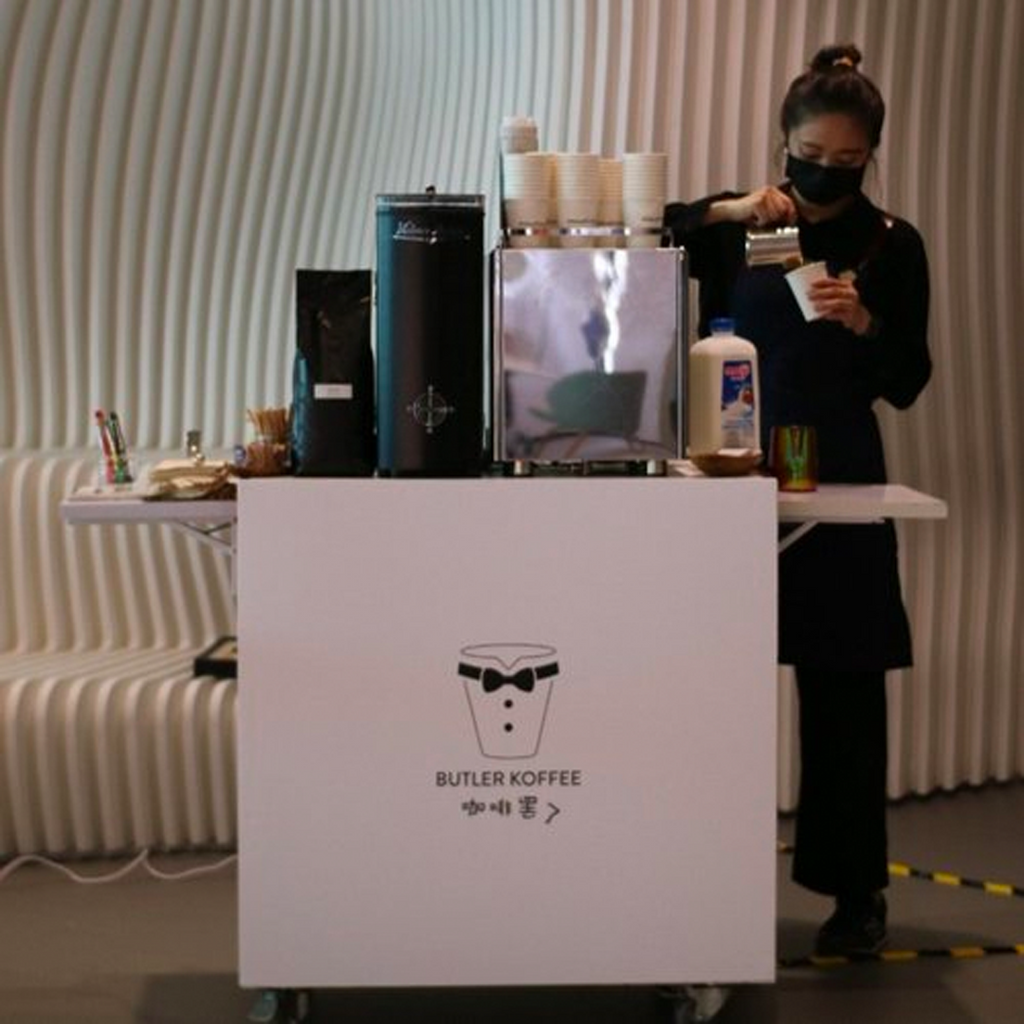 Includes: Coffee cart with barista. Disposable cups included and customisable logo stickers available upon request too.