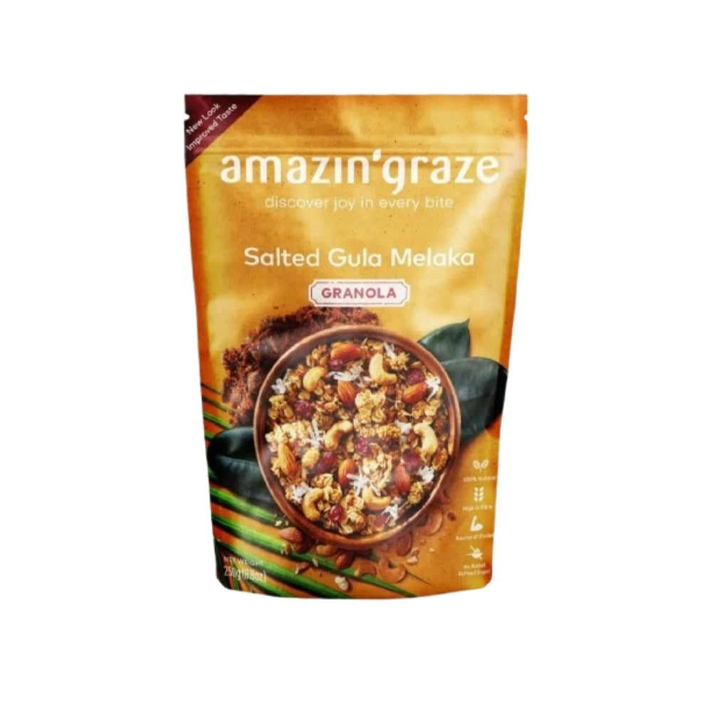 A unique blend that captures the rich, caramel-like flavor of Gula Melaka (palm sugar) with a hint of sea salt, combined with crunchy granola clusters. A delightful fusion of traditional flavors and modern nutrition.