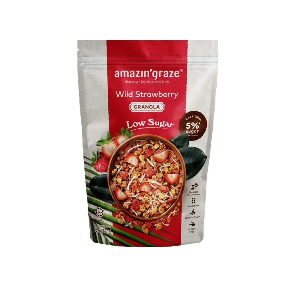 Infused with fresh strawberry and raspberry puree, this granola is now packed with three times the previous amount of freeze-dried strawberries. Sweetened with erythritol, a natural, low-calorie sweetener that doesn't spike blood sugar levels.