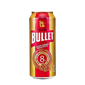 Bullet Beer is a strong lager known for its high alcohol content and distinct Indian character. The 490ml can delivers a full-bodied, malty taste with a clean, dry finish. It’s brewed for strength and flavour, making it a bold choice among strong beer drinkers. Smooth carbonation and subtle bitterness add to its drinkability. Ideal for those who prefer their beer with a punch.
