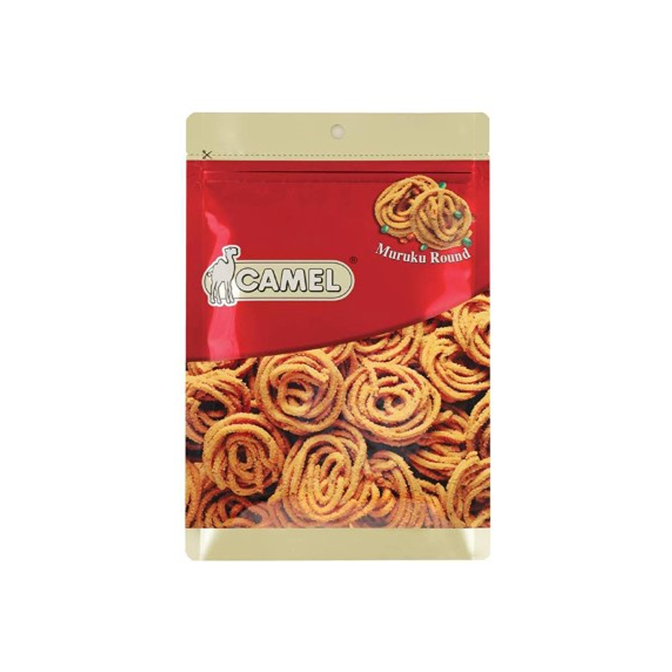 Camel's Round Muruku is a crispy, savoury delight! These spiral-shaped snacks are made from a blend of rice flour and spices, giving them a satisfying crunch and a burst of flavour with every bite.