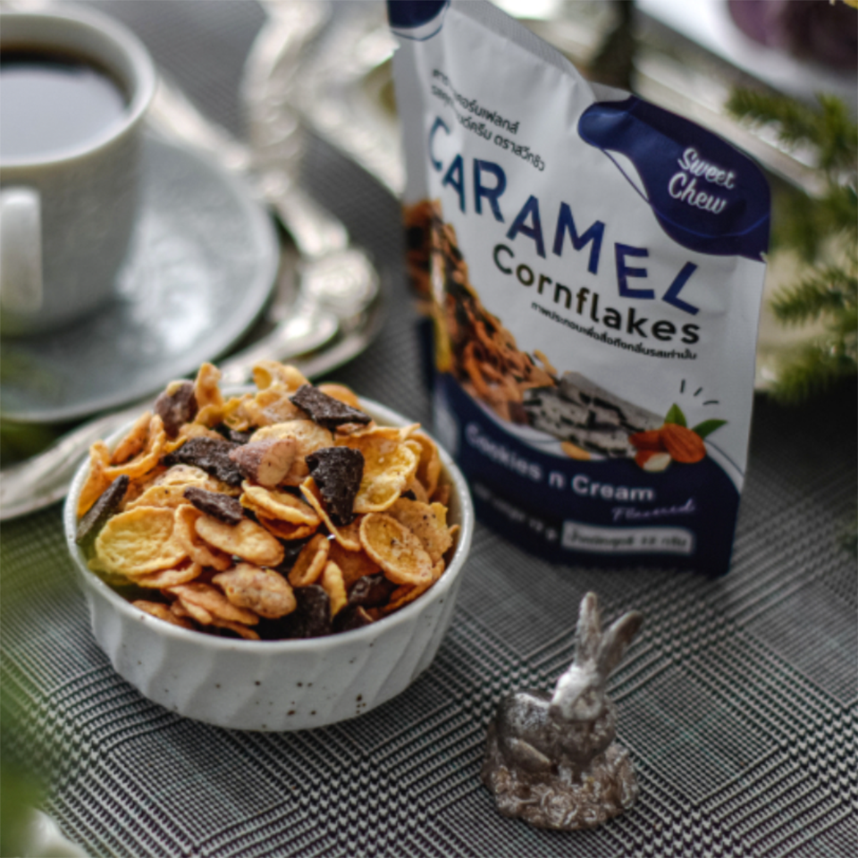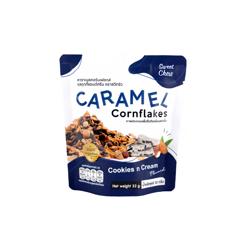 Sweet Chew's Cookies n Cream Flavoured Cornflakes are a delectable treat that will tantalize your taste buds. The crunchy cornflakes are generously coated with a sweet and creamy cookies n cream flavour that will leave you craving for more. Each bite is a perfect balance of crispy cornflakes and luscious cream that will melt in your mouth. The convenient 32g pack is perfect for a quick snack on the go, or to indulge in at any time of the day.