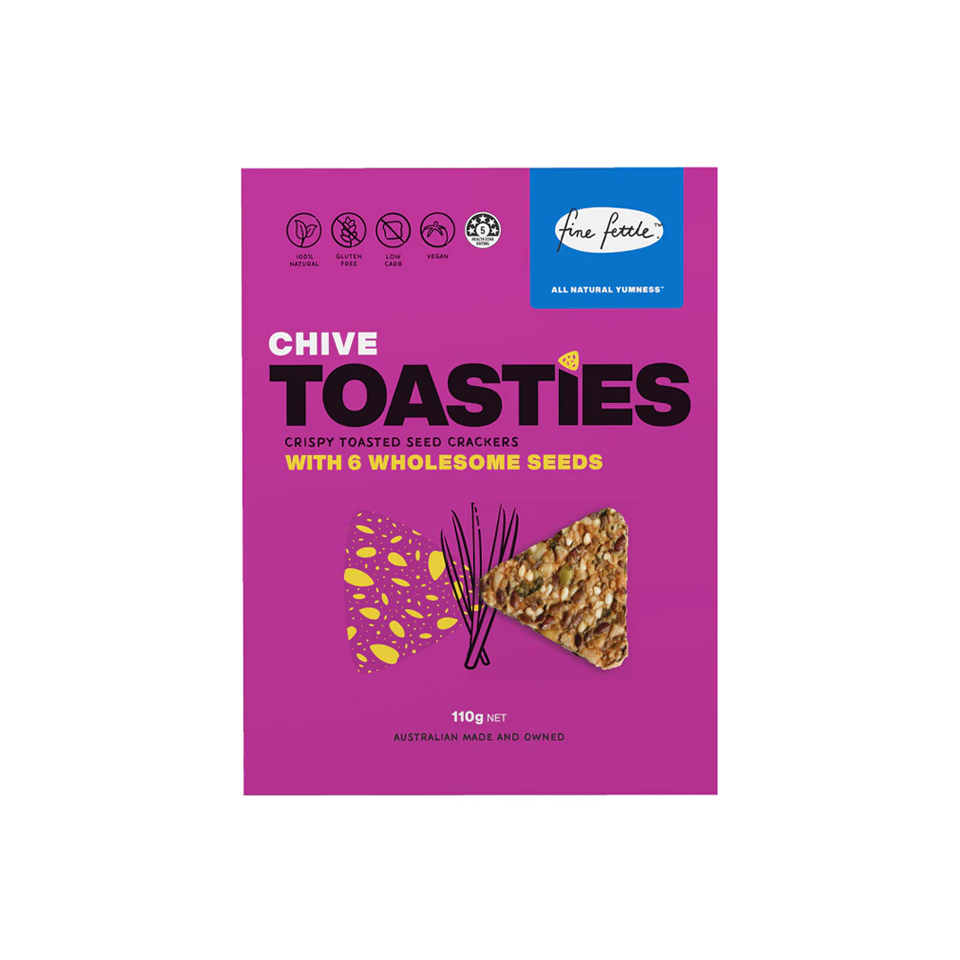 Made with 6 different types of wholesome seeds, these chive toasties are light and crispy, making it the perfect snack to be dipped in Salsa, topped with cheese or even on a salad!
