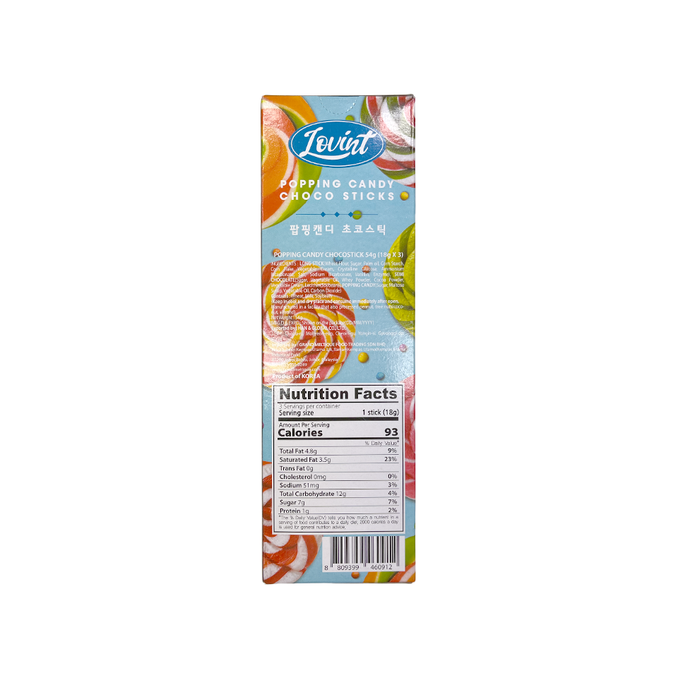 Lovint Popping Candy & Chocolate Stick offers a bold chocolate taste and crunchy texture for everyone to enjoy. Sweet and unique, the chocolate sticks are specially topped with popping candy for the best eating experience.