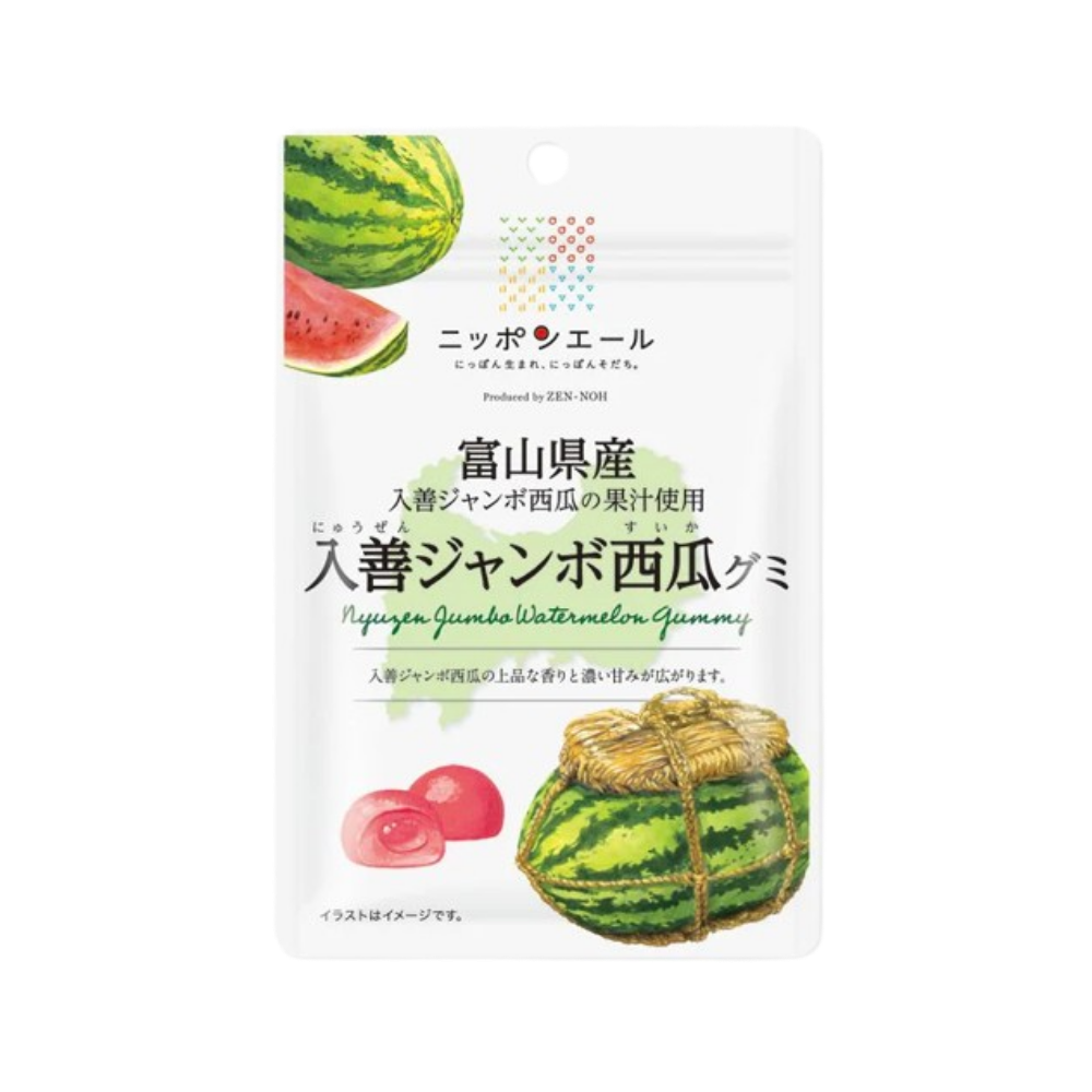 These gummies carry the juicy sweetness of Toyama’s Jumbo watermelons, delivering a refreshing slice-of-summer flavor in every bite. The soft texture reproduces the crisp, hydrating quality of fresh watermelon. It’s a seasonal favorite crafted to celebrate Toyama’s agricultural excellence. Housed in a travel-ready 40‑g pouch. Ideal for a cooling snack on warm days.