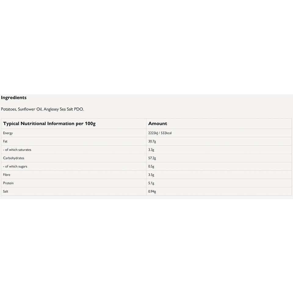 Seawater is harvested from the Menai Straits before its being filtered, concentrated and crystallised to form pure, unadulterated sea salt. Nothing, apart from heat and water, is added during the process, resulting in a truly natural product beloved by many of our customers.