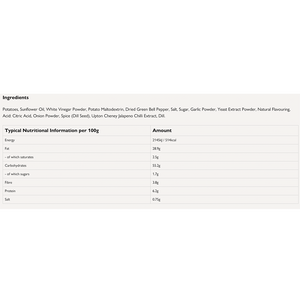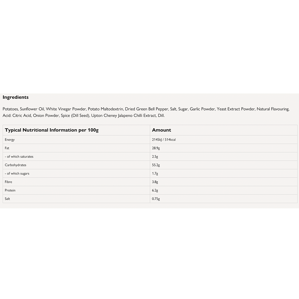 With Jalapeño peppers sourced from Delicias, a town in northern Mexico, the authenticity of the peppers heat combined with aromatic dill creates a great tasting fusion of flavours that go great with these British crisps.