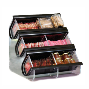Whether you're catering an upcoming event, arranging an elegant buffet, or organizing the condiment station at your coffee shop, the EZ-Organizer helps keep items easily accessible and neatly organized. The Double Unit Condiment Display Station from Rosseto serves as a chic and durable addition to any catered event or condiment area. EZ-Organizers are perfect for holding tea packets, sugar packets, stir sticks, and even pastries and fruit.