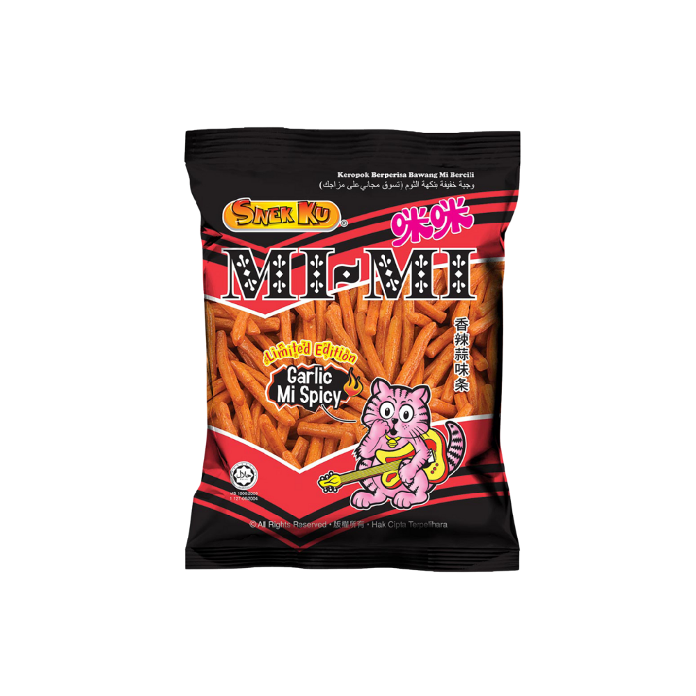 Snek Ku Garlic Spicy MiMi (70g) is a bold and flavourful snack that brings together the perfect combination of garlic and spice. The crispy, fried noodle crisps are seasoned with a zesty garlic flavour and a touch of heat, creating a deliciously savoury and slightly spicy profile. The 70g pack provides a generous serving, ideal for those who love a snack with a kick. The garlic flavour is aromatic and well-balanced, while the spicy notes add just the right amount of heat without being overwhelming. Whether you're enjoying it as a quick snack on the go or sharing with friends, Snek Ku Garlic Spicy MiMi is a great choice for those who enjoy a bit of spice with their crunch, making it a tasty and satisfying option for any occasion.
