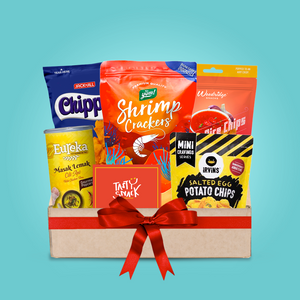 *Please note that this gift box is on a pre-order basis, and prices quoted are before GST. The image is not drawn to scale and is for illustration purposes only. Tasty Snack reserves the right to change out any products depending on availability.