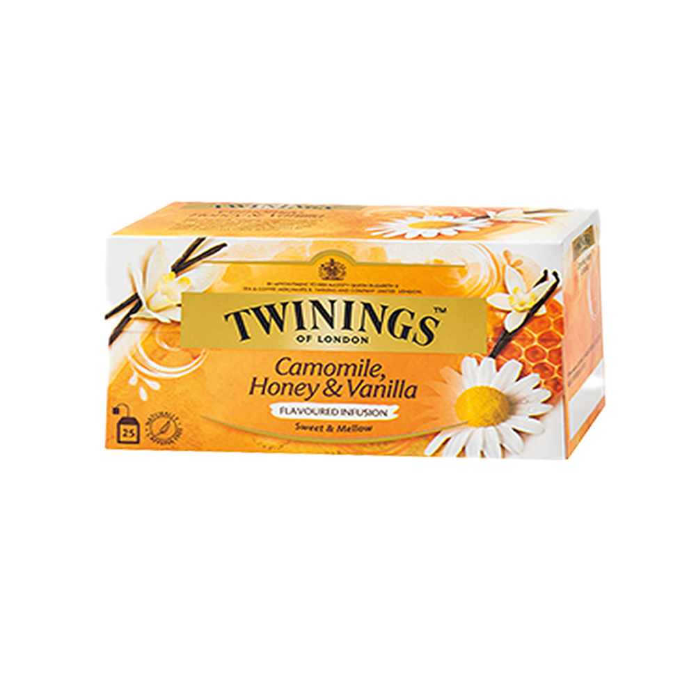Twinings Camomile Honey Vanilla is a soothing herbal tea blend crafted by Twinings of London, a renowned tea company with a long history of producing high-quality teas. This particular blend combines the calming properties of chamomile with the sweet, comforting flavours of honey and vanilla.