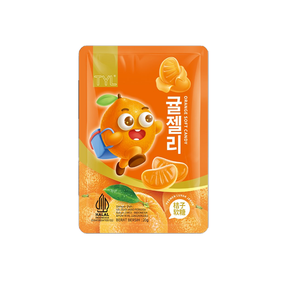 Orange Soft Candy typically has a soft and chewy texture. The outer layer has a chewy layer to 'break' so you can taste the grape juice on the inner layer, juicy!